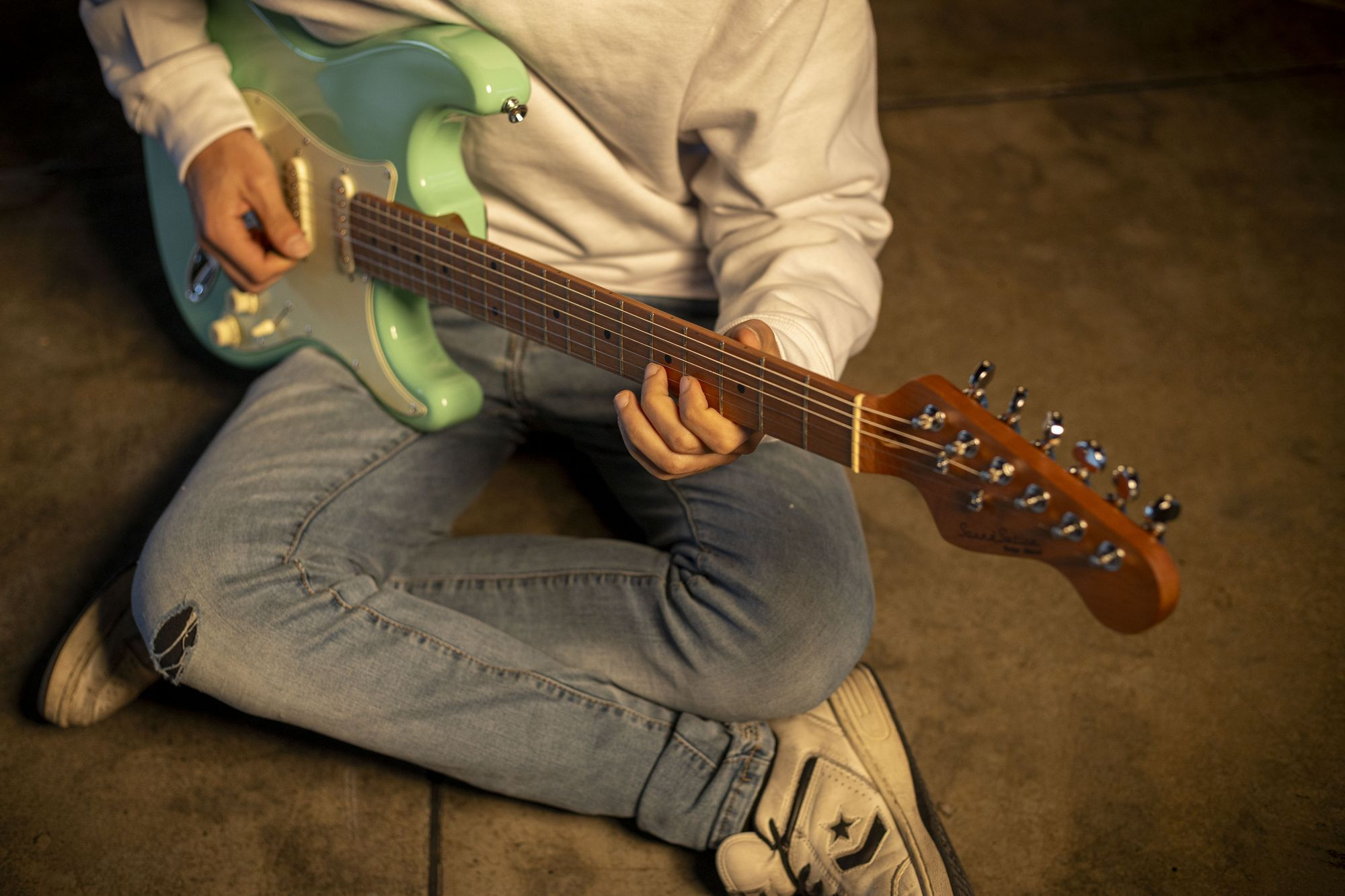The retro touch comes from three vintage-style finishes combined with the Mint Green pickguard, with high-quality self-locking tuners and D'Addario XL strings adding further value to an instrument with a strong personality.