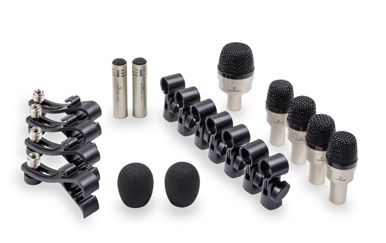 Comprimere il testoI microfoni che compongono questo kit hanno dimensioni ridotte conferendo loro un migliore aspetto estetico e discrezione in relazione alla batteria usata. Ogni microfono monta una capsula di alta qualità e la sua risposta in frequenza è stata ottimizzata per ogni microfono in base allo strumento di percussione (rullante, tom, grancassa, piatti).